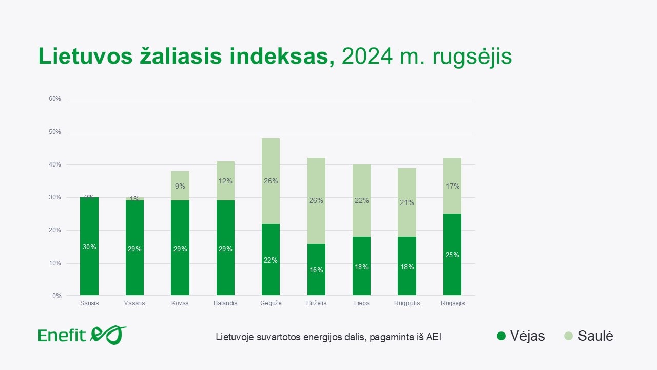 Visgi dėl to neturėtume pernelyg jaudintis. Rudenį padaugėja vėjuotų dienų, o krituliai labiau papildo hidroelektrinių baseinus – tai lemia didesnę žaliosios energijos generaciją. Be abejonės, trumpėjant šviesiajam paros metui, saulės taip pat būna vis mažiau – atitinkamai šio tipo jėgainių generacija ima smukti. Todėl artimiausiais mėnesiais sąlygas didmeninėje elektros rinkoje stipriai diktuos atsinaujinanti gamyba.